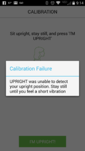 During one calibration, I did have a problem during the process and was prompted with this Calibration Failure warning. It lasted just a few seconds though and then the calibration was completed soon after. I experienced this once during my 9 day testing period. I believe the calibration issue was caused by not sitting still during the process, so just remember to hold your good posture and slouch positions without moving during calibration.